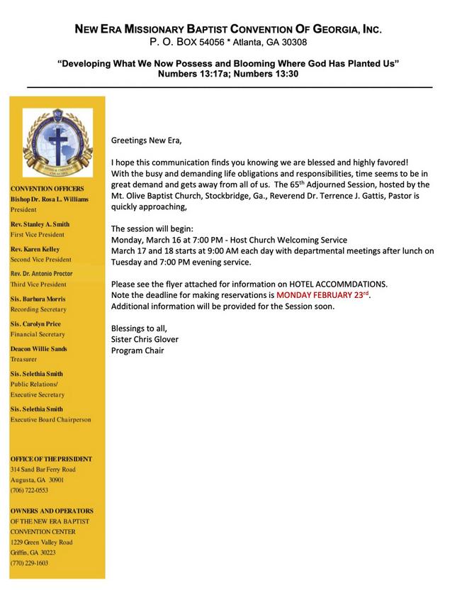 New Era Missionary Baptist Convention of Georgia, Inc. Presidential Cabinet