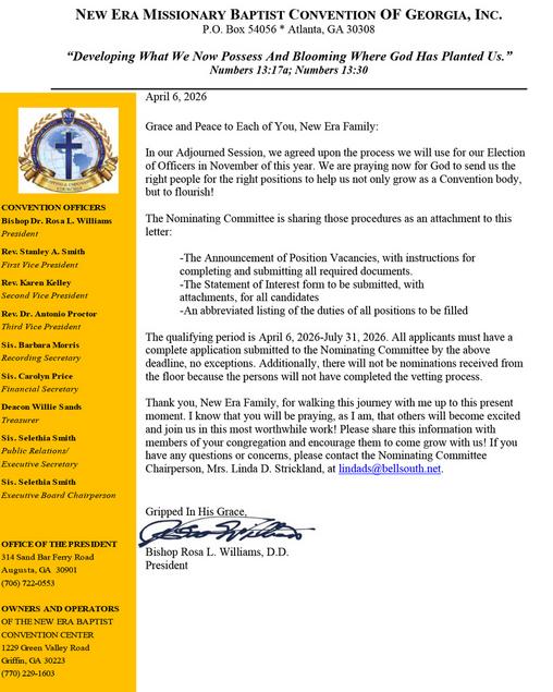 2026 New Era Baptist Convention Of GA